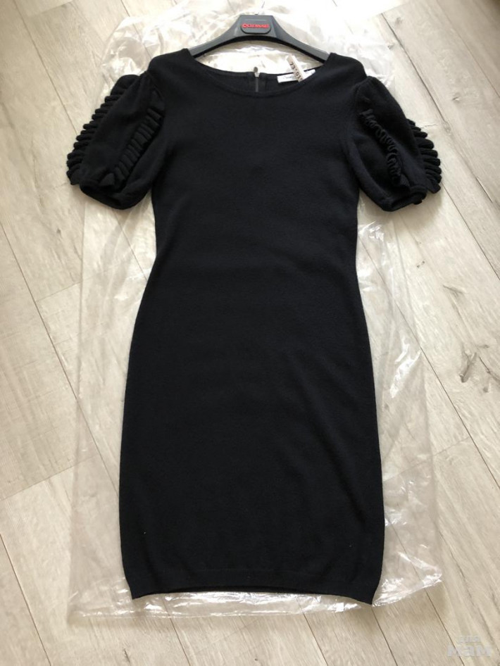 2) шикарное чёрное платье с оригинальным рукавом ( нежный состав кашемир , шерсть , очень мягкое ) чёрное . Цены в бутике космические !