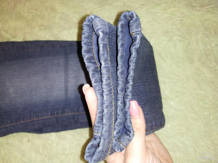 Длинна от пояса и до конца штанины-65 см(за счёт отворотов)