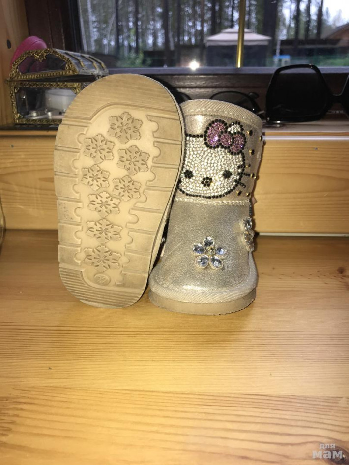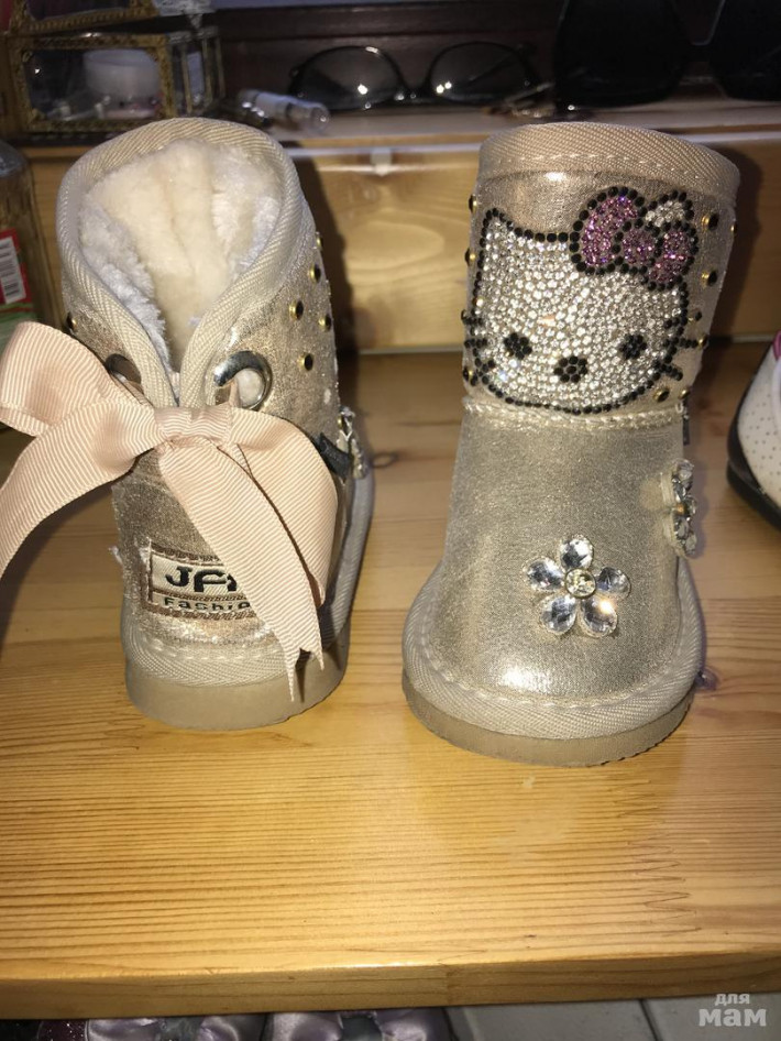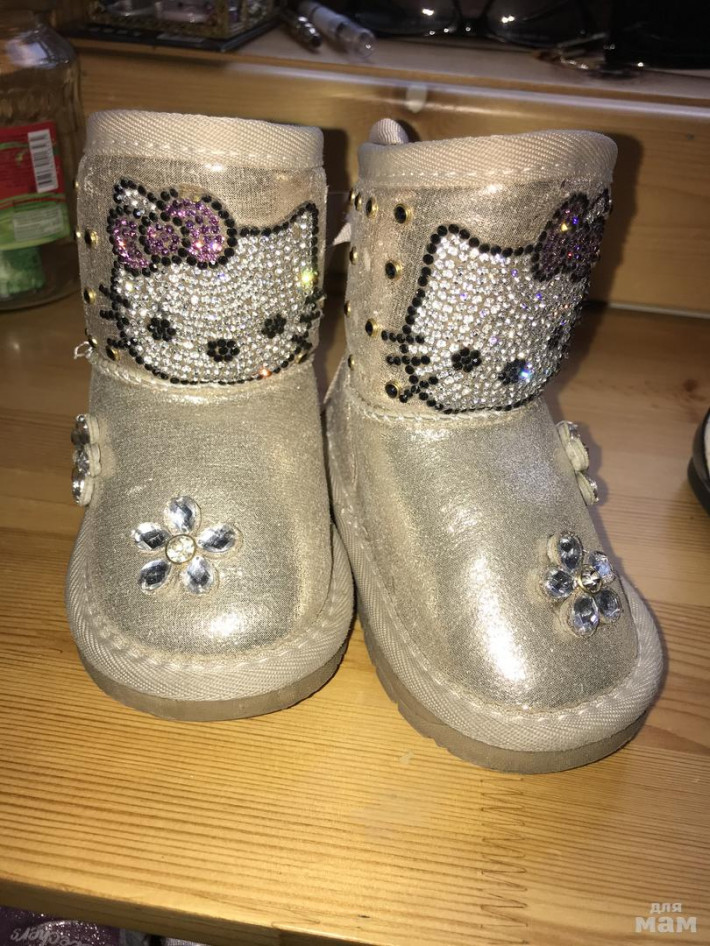 для девочки и в пир, и в мир. Идеальные. Супер-красивые, для любителей kitty. Состояние отличное, почти новые, потому что практически не одевались ( по подошве видно). можно носить, как сапожки и как ботиночки. стразы все на месте, теплые, без царапин.