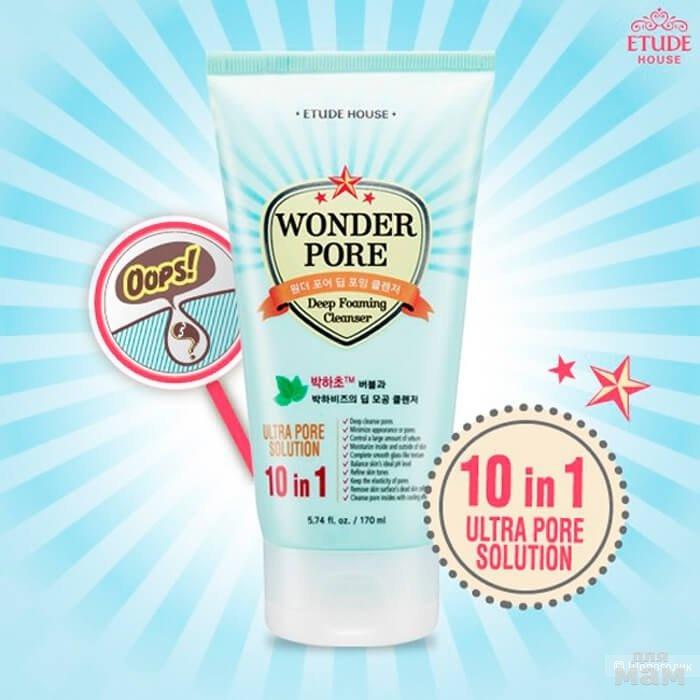 Очищающая пенка для кожи с расширенными порами Etude House Wonder Pore Deep Foaming Cleanser