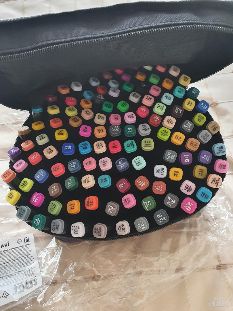 Шикарный набор маркеров 120 штук! Мечта юного художника! В наборе 120 двусторонних маркеров+сумочка для хранения!