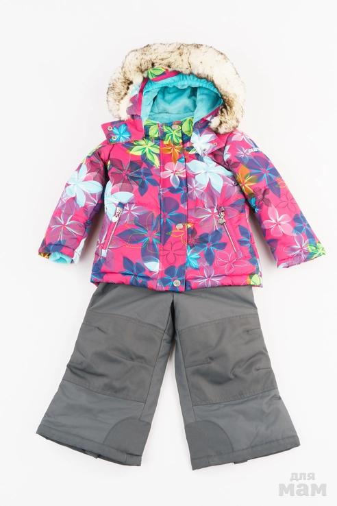 ый утеплитель Polifill (полиэстер) • Подкладка из полиэстера Куртка • Съёмный капюшон со съёмной меховой опушкой дополнительно застегивается на кнопки • Высокий воротник-стойка • Застежка-молния скрыта за ветрозащитной планкой • Мягкие эластичные внутренние манжеты • Два боковых кармана на молнии • Внутренний пояс-резинка по линии низа Полукомбинезон • Снегозащитная юбка препятствует попаданию холодного воздуха внутрь • Низ штанин продублирован непромокаемыми гетрами на резинке, которые защищают от попадания в обувь снега • Спинка и лямки отстёгиваются (р-р 7-14)