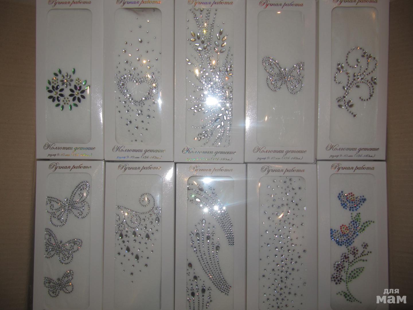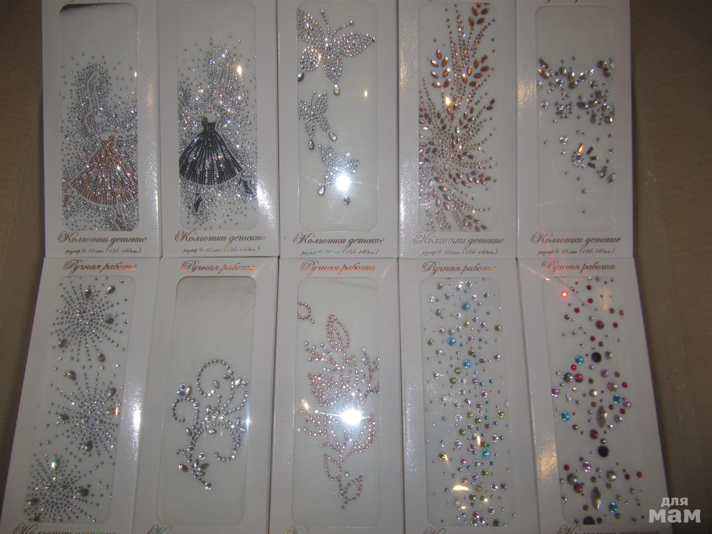 есть белые россыпь спереди, перо,узоры арт 222,три бабочки,цветы арт 200,лебеди,снегирь,хохлома, из классики гламурики по 300:арт 137, балерины и феи, без страз 230р