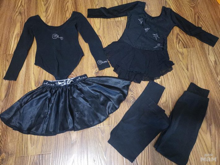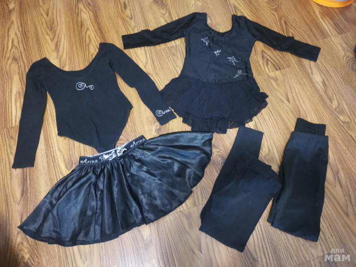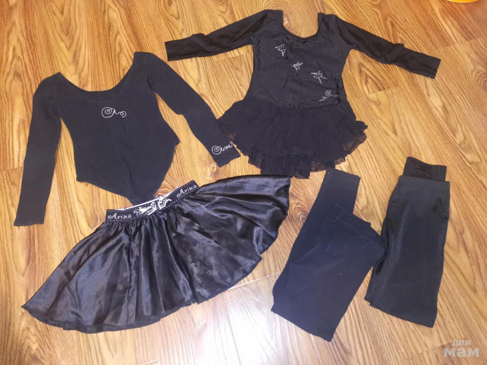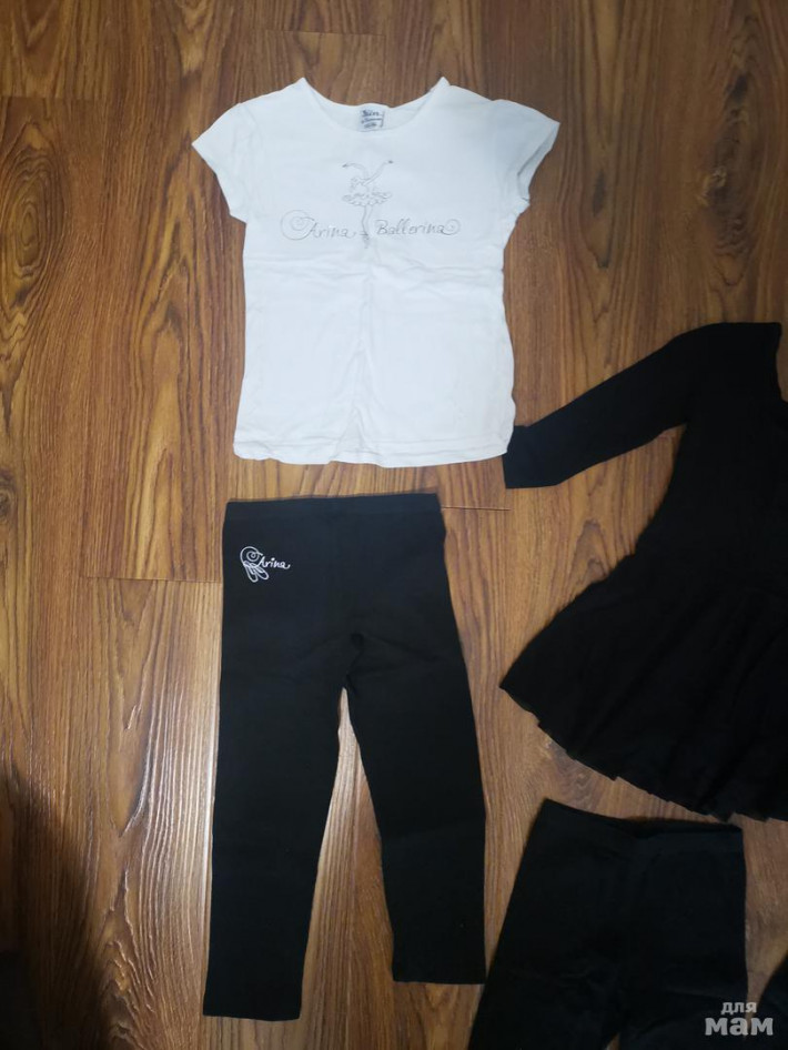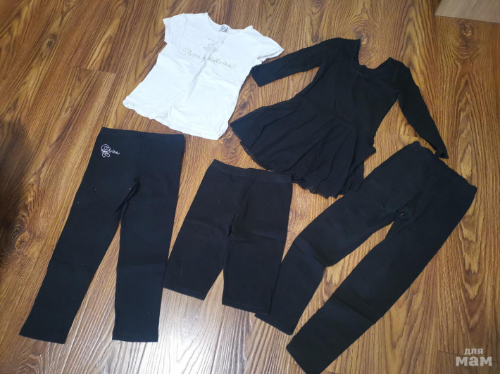 Комплект для тренировок, брюки, боди и платье, все примерно на рост 146см.