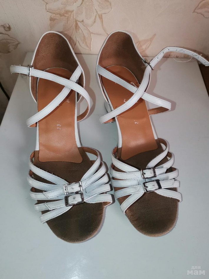 Туфельки беленький, р.21.5см по стельке, танцевали в них 2 турнира. Покупали за 3900р