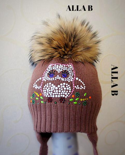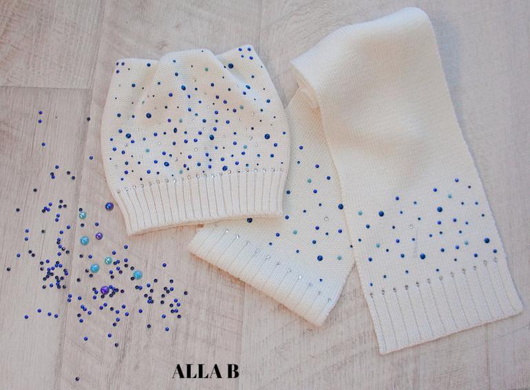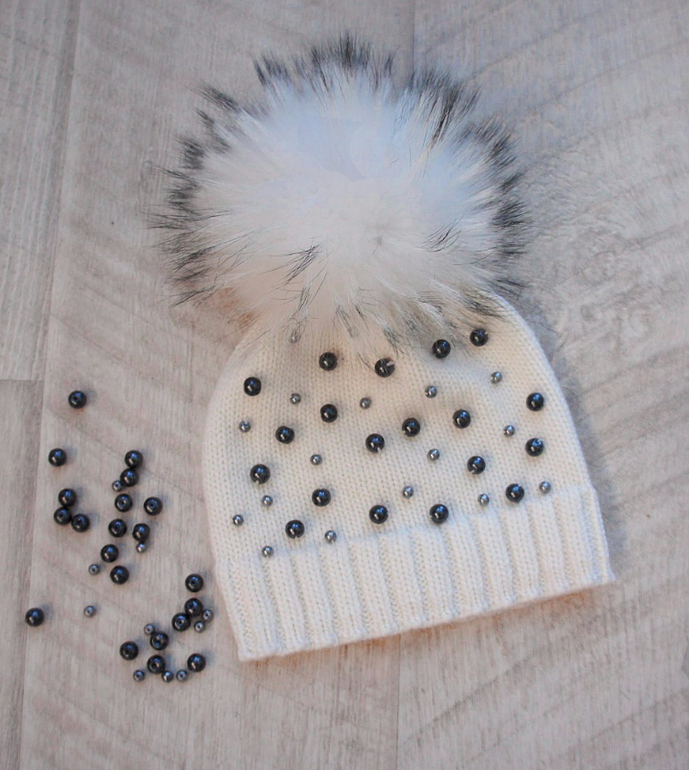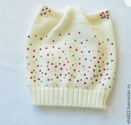 Шапка из толстой нити зима. украшена бусинами сваровский 3200рую