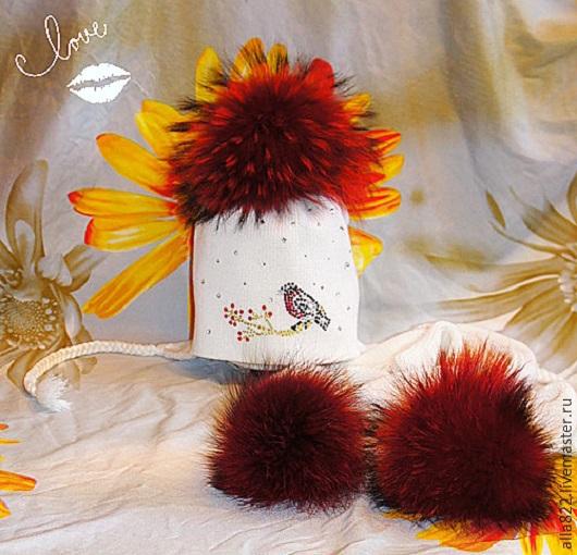 Нитка меринос в 2 слоя мех енота 18-19см стразы асфур шапка 2600руб снуд в 2 оборота 1600руб варьки от 1000рубШапочка весна-осень до 0 градус шапка с не большими ушками, меринос в 1 слой. 1500руб. снуд весна-осень в 2 оборота 1300руб есть в наличии а ОГ 49-51см Шапка украшена розами сделанными в ручную, украшены бусинами сваровски и шикарными 2мя камнями асфур ( на солнце камни сверкаю просто мега шикарно)  мех енота18-20 и шикарные стразы Асфур,. моховой помпон съемный,  3250руб снуд зима в 2 оборота 1600руб варьки от 1000рубкомплект осень-весна. 2600рубШапка из толстой нитки пойдет на холодную осень и евро зиму. есть в наличии на ОГ 52-54см цена 2300руб Шапочки весна 1 слой. по 1500руб