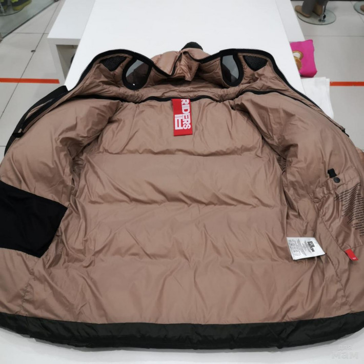 Мечта, а не куртка!!! Не оставит равнодушным никого!!! Пуховик RIDERS ON STORM. Красивого цвета капучино с контрастными вставками. Лёгкая, хорошо набита. Внутри карманы, большие наружные на флисе. Капюшон с очками- отдельный шедевр!!!