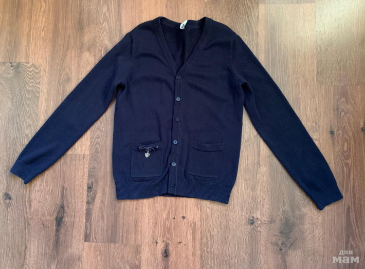 1) кардиган б/у 134- фирма акула. Цвет т синий. Цена 250₽