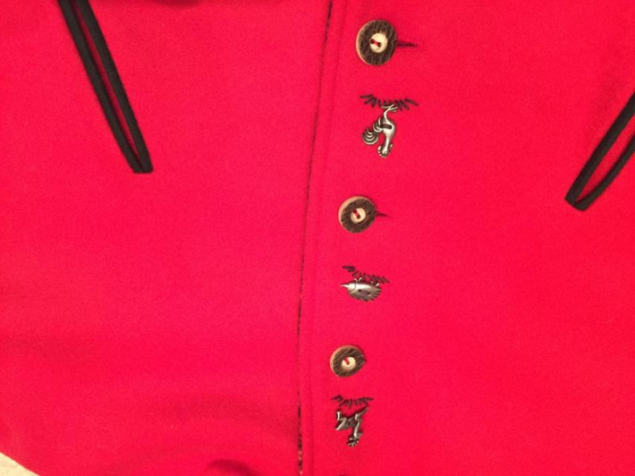 Пальто (пончо) уютное, тёплое и очень мягкое. Изделие сделано и 100 % шерсти. Цвет насыщенно красный (фото искажает оттенок). Очень качественное и стильное. На пальто где застёжки пуговиц пришиты фигурки животных (петушок, ёжик, олень), что прибавляет изделию не обычный и кокетливый вид.