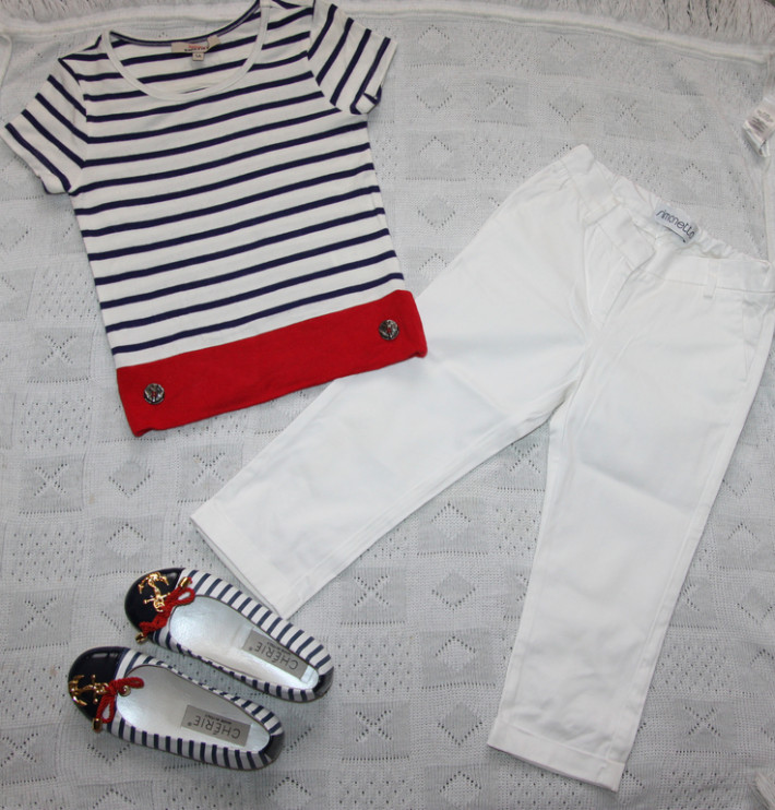 К брючкам отдам футболку Юниор Готье, если надо. Отдельно футболку не продаю. Есть нюансик - на плече зацепка (дырочка). (на фото видно)