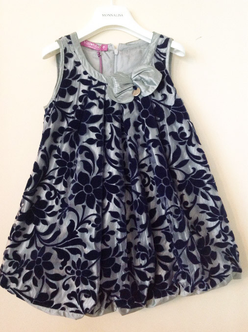 Нарядное платье-баллончик ValMax. Очень красивое. Красиво смотрится на ребенке.Можно носить самостоятельно, можно на футболочку или водолазку. Поверх основной ткани сеточка с синим бархатным набивным рисунком. Отличное состояние.Размер 50/ 3 года. подмышки 31см. Цена 1700р. 1500р
