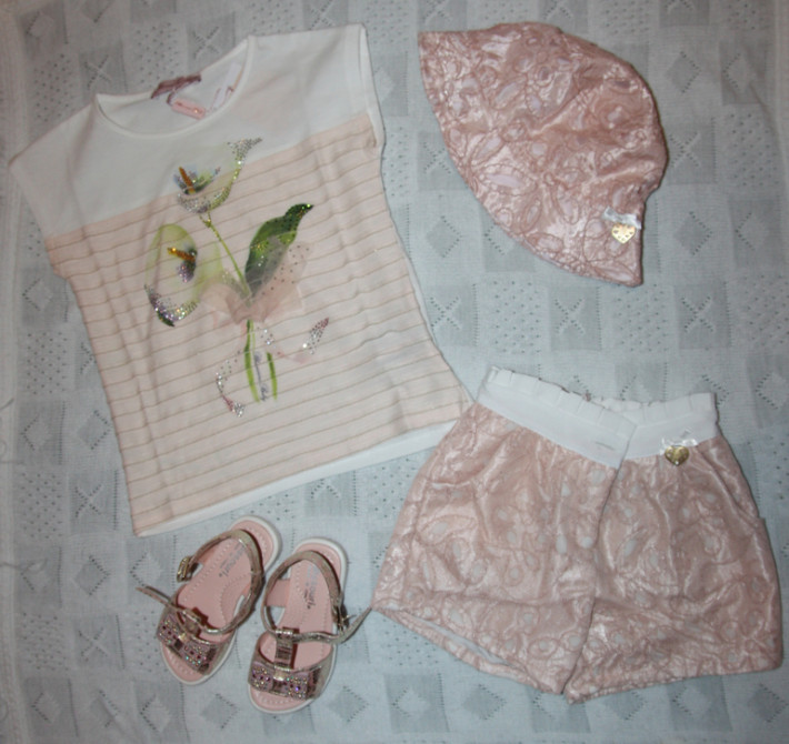 Красивый костюмчикMiss Blumarine из серии Лилии, в идеале. Размер 36мес, но на мой взгляд большемерит.Комплектом! Цена 4500р. 3500р