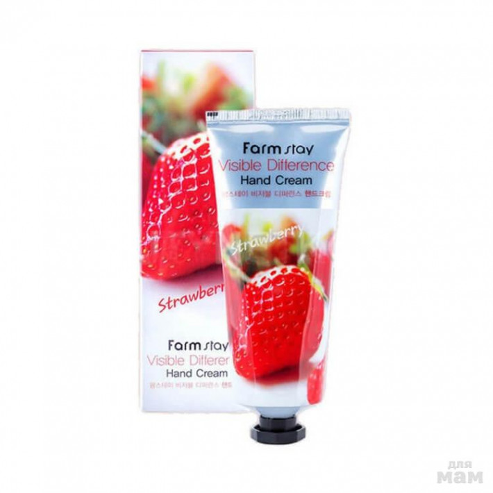 FarmStay Visible Difference Hand Cream Strawberry — это увлажняющий крем для рук с экстрактом клубники. Он интенсивно питает и увлажняет кожу, снимает напряжение и усталость, ускоряет заживление повреждений, устраняет чувство стянутости и дискомфорта.