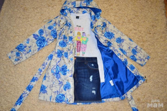 Плащ в состоянии нового, хоть бирки вешай- без следов носки, без недостатков, зацепок, потертостей и т.д. клепочки не поцарапаны, очень красивая расцветка. Без утеплителя - спасёт от ветра и моросящего дождика. Капюшон отстегивается, в комплекте пояс. тм Pelikan (Пеликан). размер 9 лет (рост по сетке 134-140, реально до роста 146). Юбка и лонг тоже в продаже.