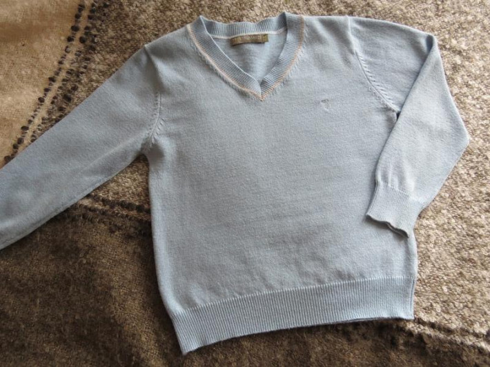 В нагрузку могу отдать хлопковые синие брюки (на стройного мальчика) и хлопковый свитер (подойдет как поддева, не на выход)