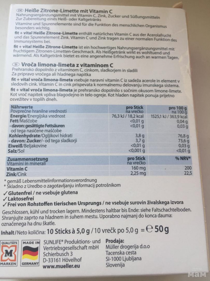 Напиток содержит витамин С и цинк для поддержания нормального функционирования иммунной системы.