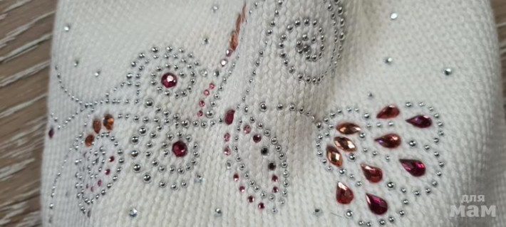 6. Легкая шапочка весна-осень-лето, фирмы "Сторм". Инкрустирована стразами, очень яркая и красивая. Размер указан 50-52, но на размер маломерит. Идет до 50 см максимум. 450 руб. продана
