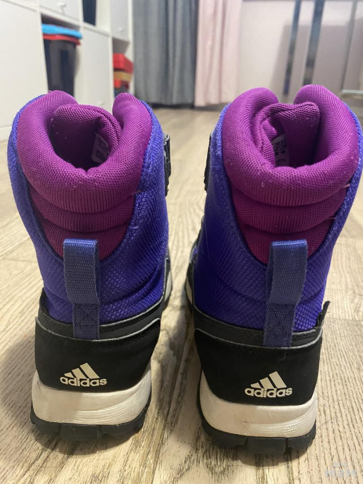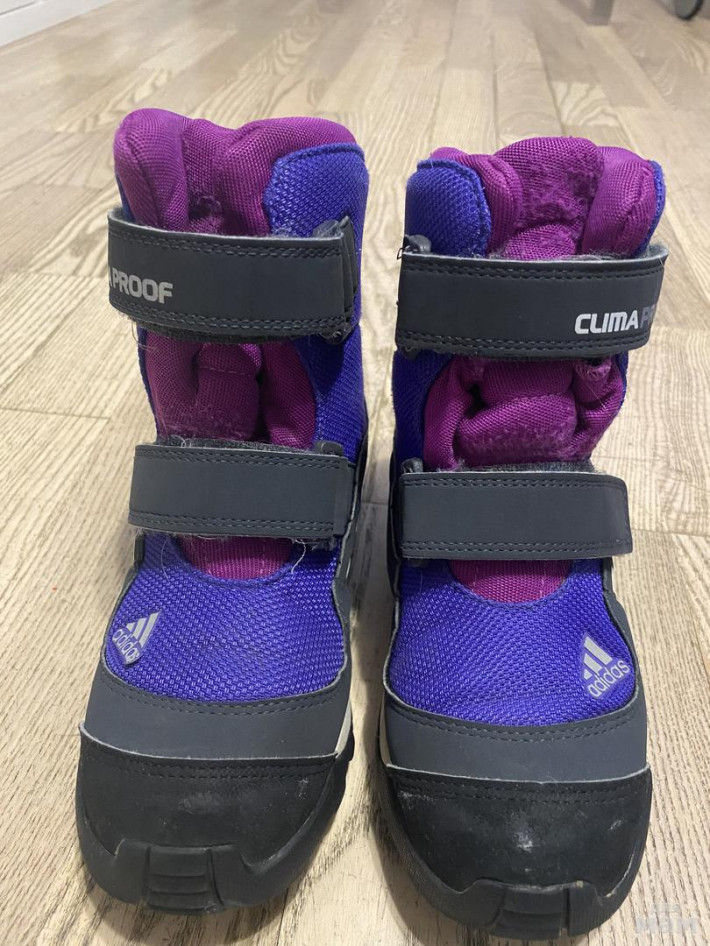 Наш любимый комплект. Цвет фиолетовый, фото искажает. Все в очень хорошем состоянии . На пальто есть нюанс- в подмышке разошлось по шву ( не проблема исправить). Наполнитель плотный синтепон ( очень удобно, можно стирать в машинке). Пальто очень комфортное и тёплое . У ботинок язычок в катышках от липучек( в носке не заметно) 30-31 размер . Шапки одна флисе , другая тонкая. В идеале. Цена комплекта 2999. Пожалуйста, без торга. Одна только шапка стоила 1500