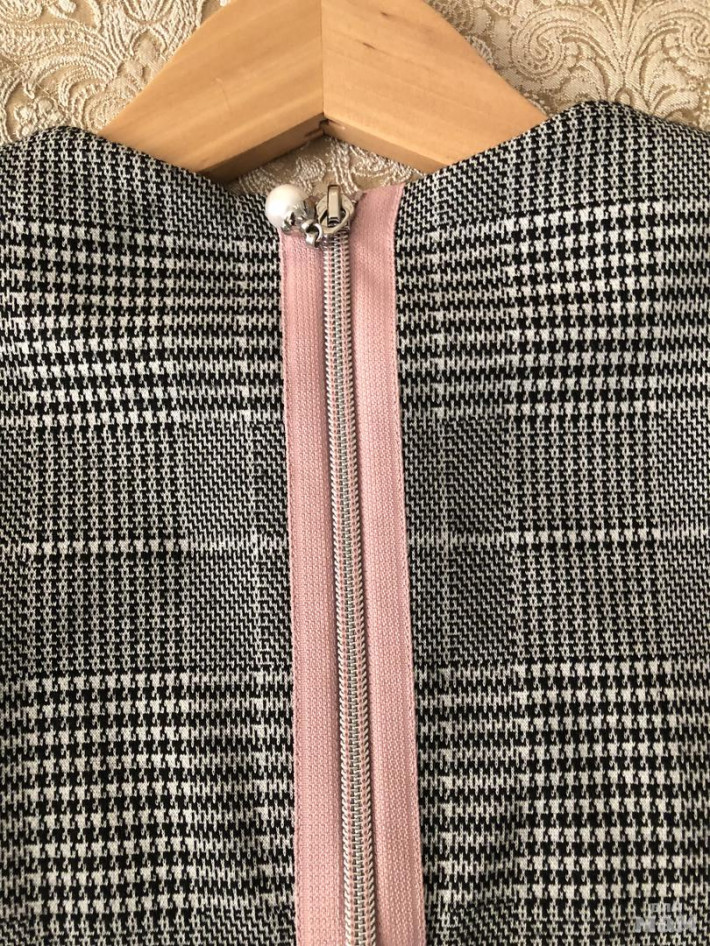 Стильное платье + болеро фирмы "Фантазеры". Маркировка 146.Платье "и в пир и в мир". Серая клетка с фурниторой под жемчуг.