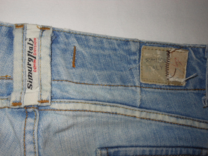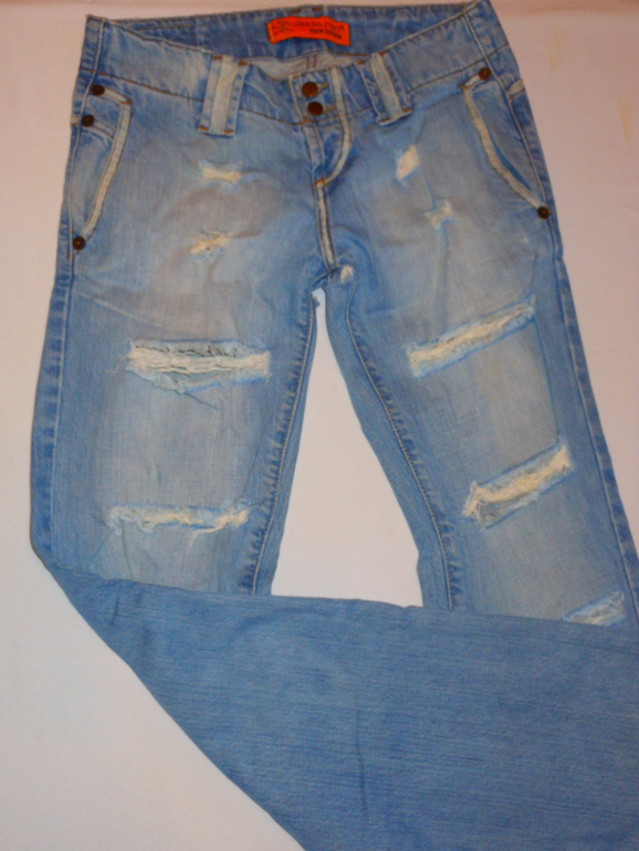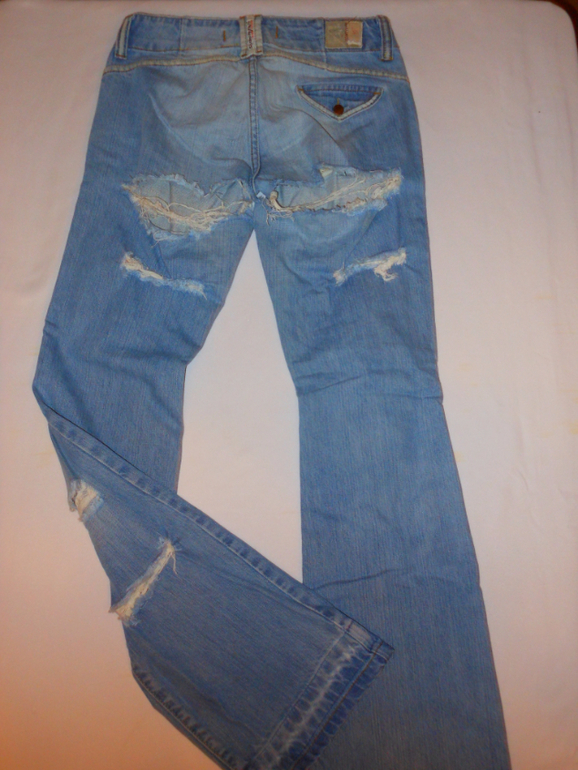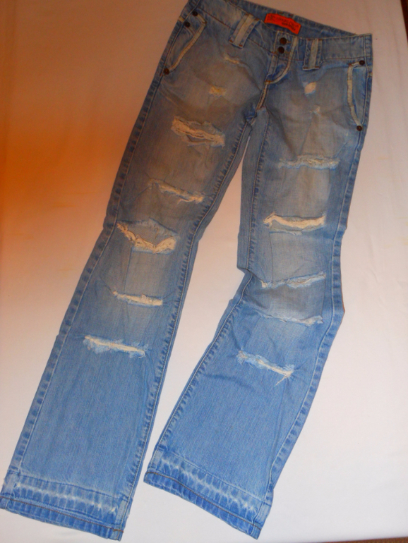 джинсы рваные оригинал италия х-б книзу клёш-1.5 р пояс-34см шаговый-85см бедра-40см