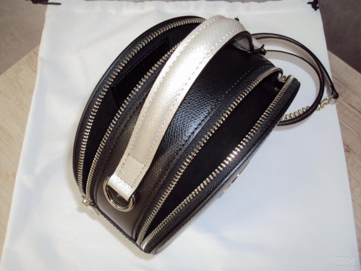 Основной цвет глубокий черный. Ручка и ремень серебро. Износоустойчивая выделка кожи тисненый арес, как у многих коллекций Furla и DKNY.