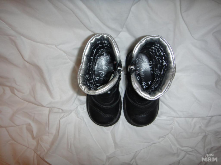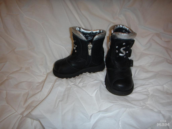 Натуральные кожаные сапоги демисезон Simonetta р. 21 Италия. на молнии, декор стразами и кожа цвета серебро. Внутри все кожа. Ортопедическая стелька 13,5 см. Жесткая пятка. Заказаны в Италии. Цвет черный.