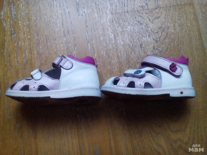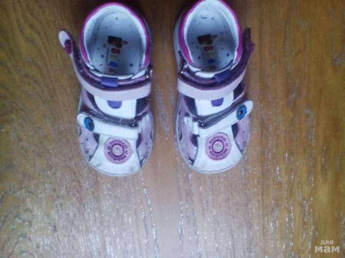 Турецкие Сандалии босоножки натуральная кожа фирма Bebetom размер 21, ортопедическая кожаная стелька 14 см. На любой подъем ножки, т.к. регулируется двумя липучками. Каблук Томаса, с клапаном антишок. Жесткая пятка. Стелька чистая, носили на носочек.