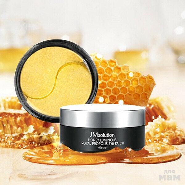 "Гидрогелевые патчи JMsolution Honey Luminous Royal Propolis Eye Patch с экстрактом прополиса оказывают комплексное действие по нескольким направлениям: хорошо питают и увлажняют кожу, устраняют следы усталости и справляются с мешками под глазами, разглаживают мелкие морщинки и кожные заломы, убирают воспаления, шелушения и любые раздражения. Осветляют тёмные круги под глазами и покраснения на коже, делают её мягкой, нежной и увлажнённой.При соприкосновении с теплом кожи, гидрогель слегка тает и обеспечивает интенсивное проникновение эссенции в глубокие слои дермы.
