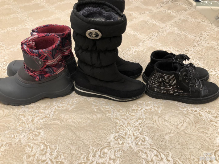 2) Сапожки черного цвета. Без молнии. Утепленны иск мехом внутри. Легкие,сверху саожка есть утяжка..Стелька примерно 21,7см