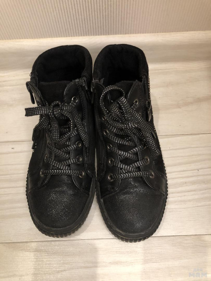 3) Ботинки чёрного цвета комбинированные замша+кожа.Внутри утеплены байкой. Маркировка 35. Стелька неи вытаскивается.Примерно 21см