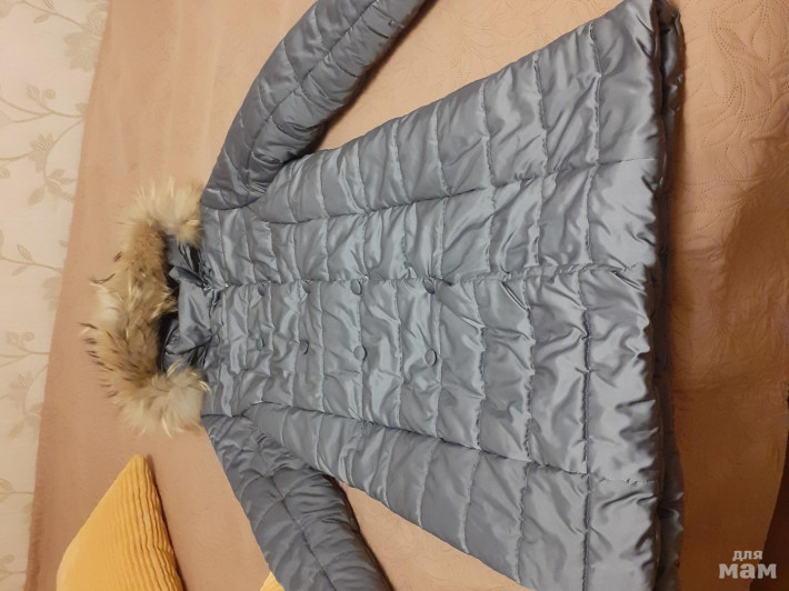 После химчистки,очень теплое,на рост от150см.Мех енот,съемный капюшон,ткань не цеплючая.