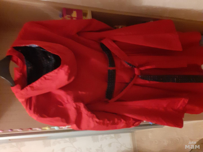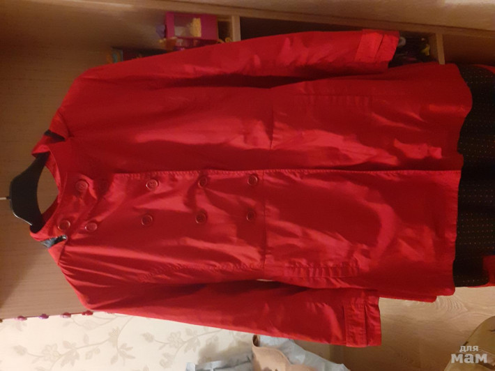 Плащ на цветной подкладке,капюшон съемный,под пояс,низ короче ,чем зад.Длина спереди-72см,сзади97см,п/о в груди- 46см,длина рукава по внешнему шву-56см,плечо- 11,5см.