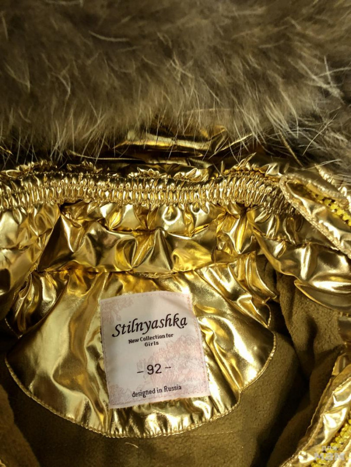 В отличном состоянии, очень тёплый, мы только в коляске катали несколько раз (но в мороз) и ни разу не замёрзли. Натуральная отстегивающаяся опушка, очень яркий)