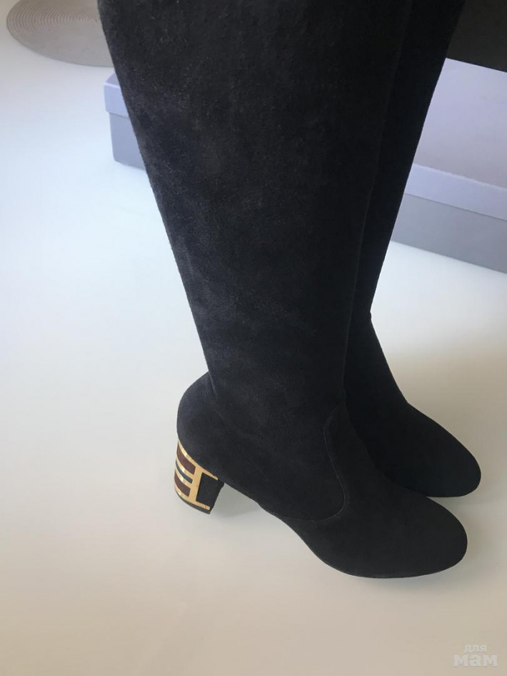 Новые,чёрная замша,верх стрейч. Маркировка 39,подойдут на 38. Цена 8000₽
