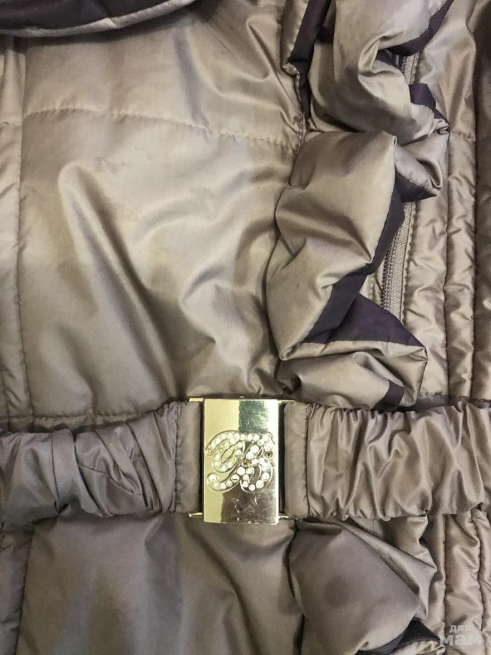 Осенне-весеннее пальто на 8-9 лет, состояние очень хорошее, на брошке нет несколько камушков. Цвет серо-розовый и фиолетовые валаны, с капюшоном ,пятен нет,на фото так свет упал!