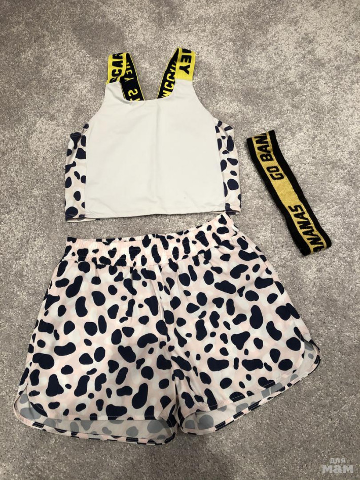 Пляжная коллекция,топ и шорты из быстросохнущей ткани.Повязочка отдельно .Состояние хорошее,носили активно.Размер 10-12 лет