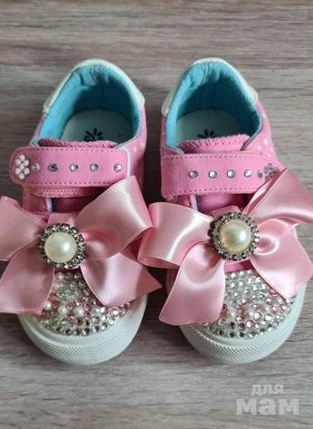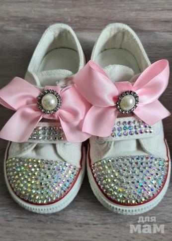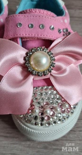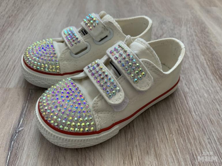 4. Безумно красивые кеды на липучкам, все сверкают, бантики можно снять. Стразы ручная работа, делали на заказ. Старшая дочка такие носит второй год. стираем их в машинке, ни одна страза ни отвалилась. Размер 27 по стельке 15 см. 1200р.