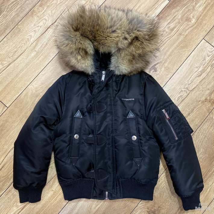 Пуховик Dsquared2 на 8 лет по маркировке. Очень хорошо набита пухом, полноценная российская зима. На капюшоне отделка из меха волка. Подойдет до роста 128/9 см. Состояние новой вещи. Из- за теплой зимы надевалась раз 5. Замеры по запросу. Куплена в Италии.