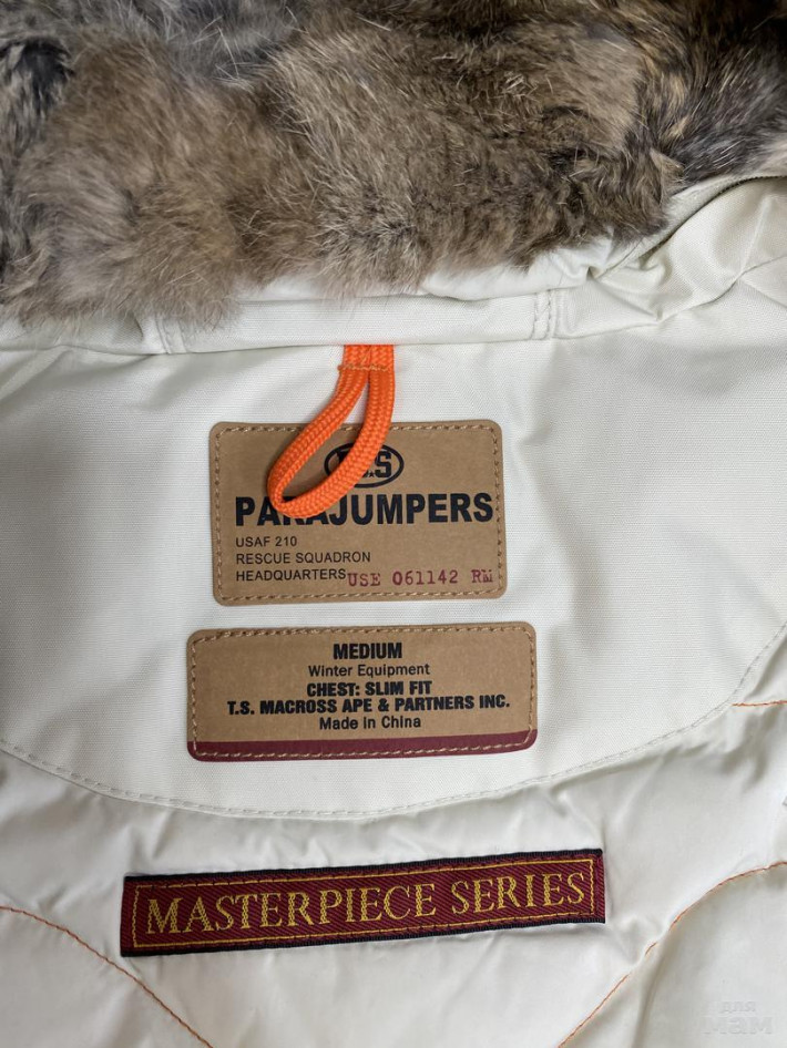Изготовлен из непродуваемой и водоотталкивающей ткани, опушка - мех енота. Размер соответствует маркировке
