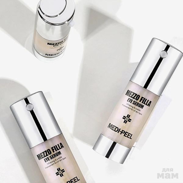 "Омолаживающая пептидная сыворотка для век MEDI-PEEL Mezzo Filla Eye Serum обладает ярко выраженным подтягивающим действием, разглаживает мимические морщинки в области вокруг глаз и носогубных складок, обладает ревитализирующим действием и тонизирует, даёт глубокое увлажнение и мягко осветляет тёмные круги.