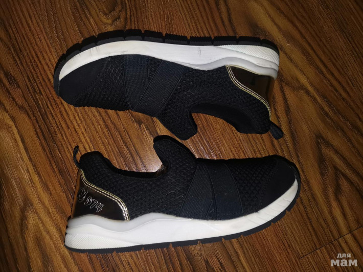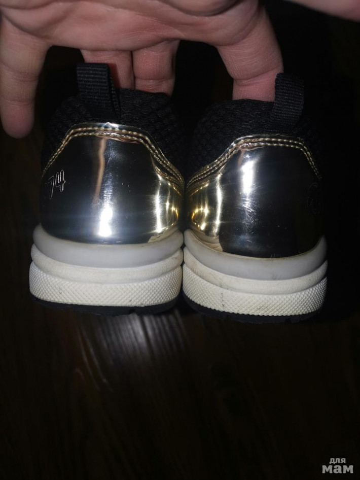 Чёрные с золотыми пятками! Носили аккуратно! Не широкие, и не растоптанные! Очень удобно и в школу и на улицу, ногу сунул и пошел! Ни шнуров, ни липов!!!!