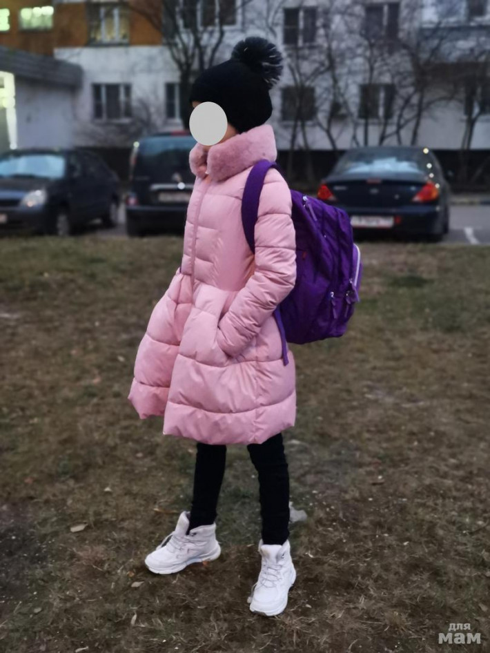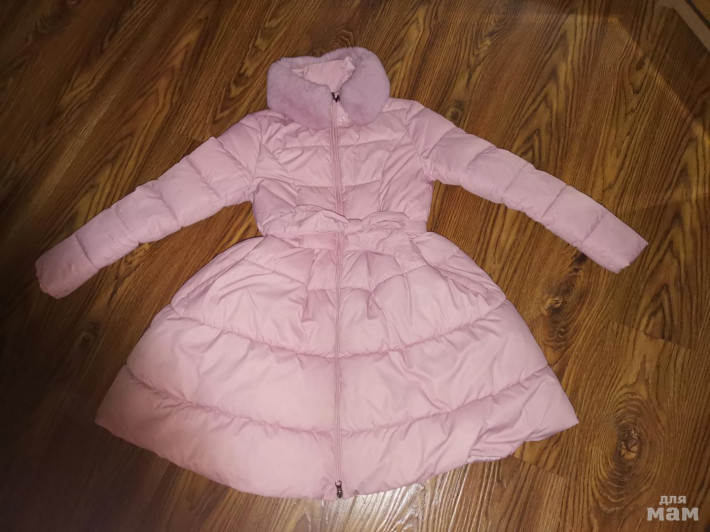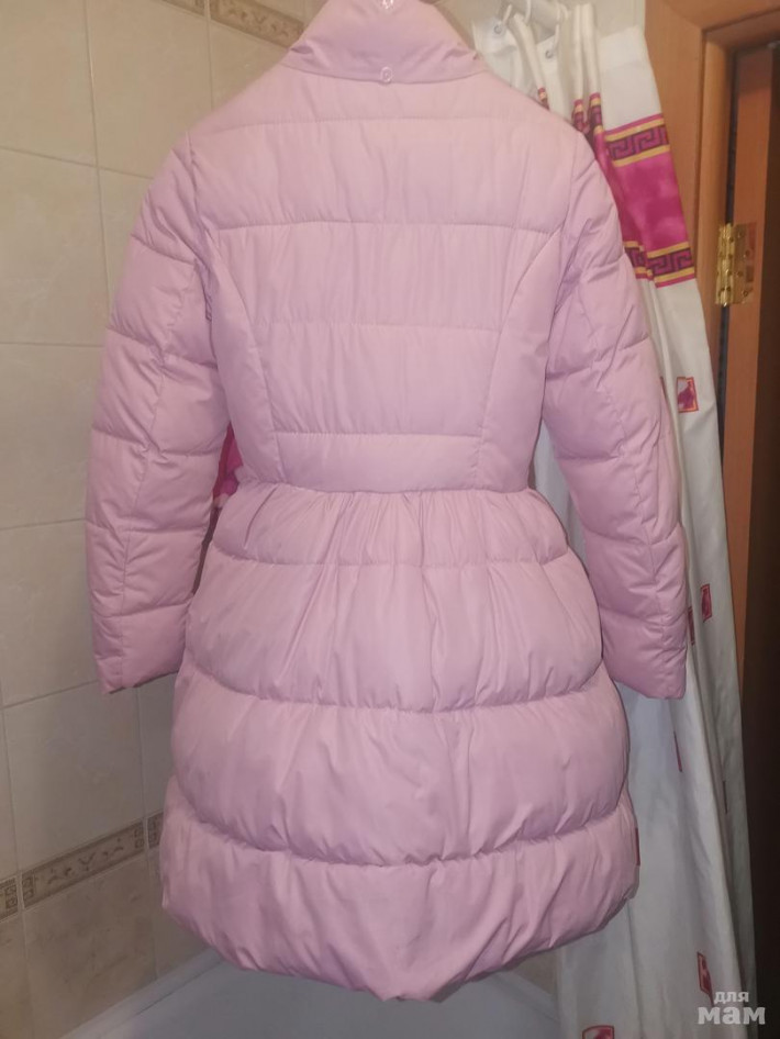Хорошенькое пальтишко до роста 155см, размер стоит S, синтепон, хорошо стирается и сохнет за ночь. Дочке к сожалению стало совсем впритык.