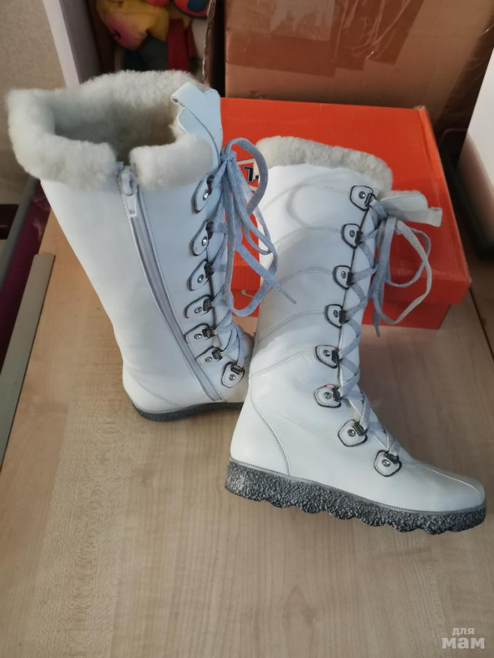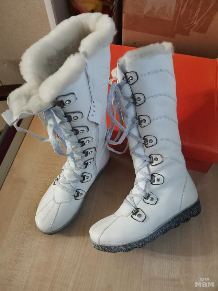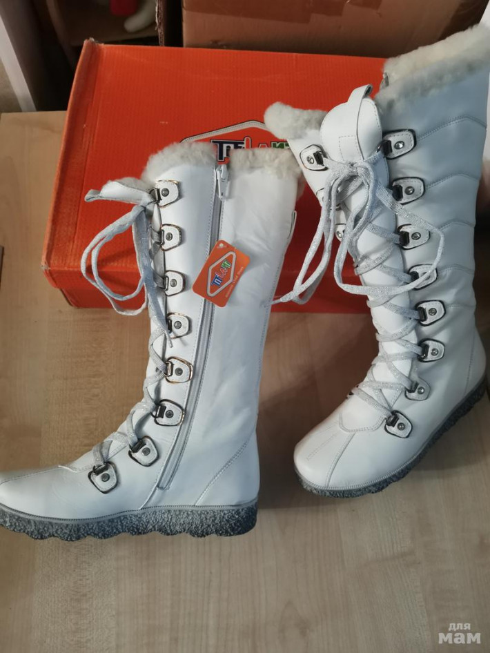 Шикарные сапожки Tiflani. р. 33, Белоснежные, натуральная кожа, очень толстая овчина меха много по всему сапогу, высокая подошва. Идеальны во всем. Новые.