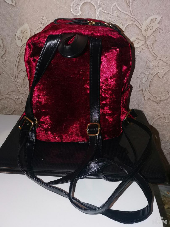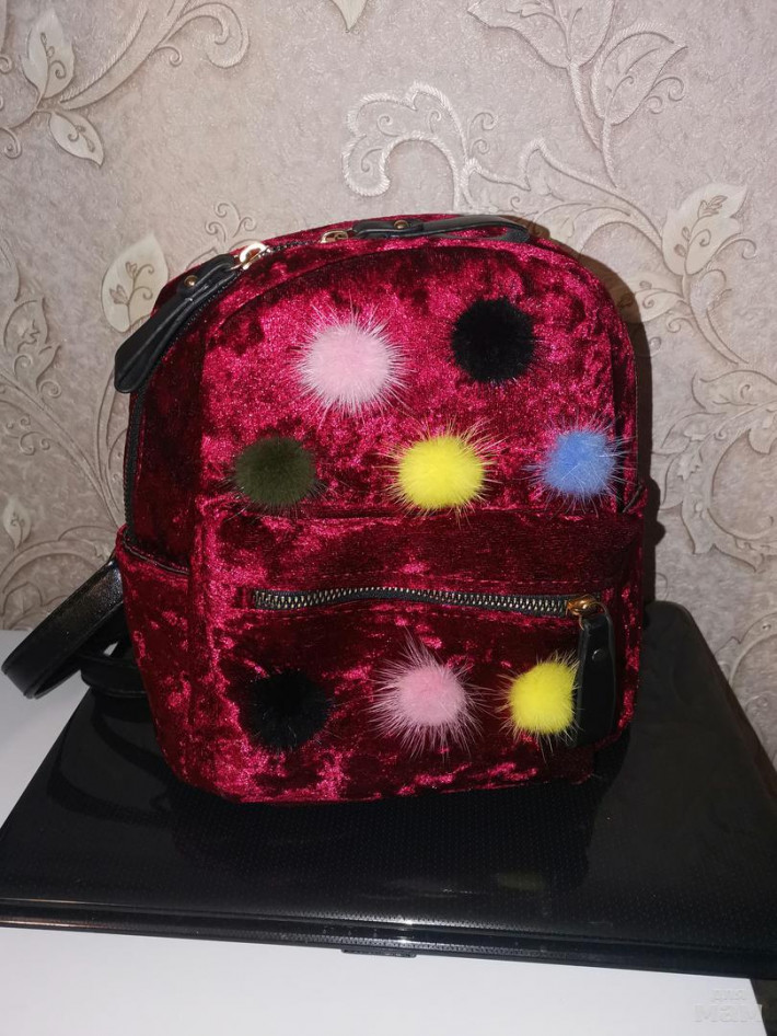 Рюкзачек красивого винного цвета, смотриться богато!!!! За счёт пушинок можно с любым нарядом носить.