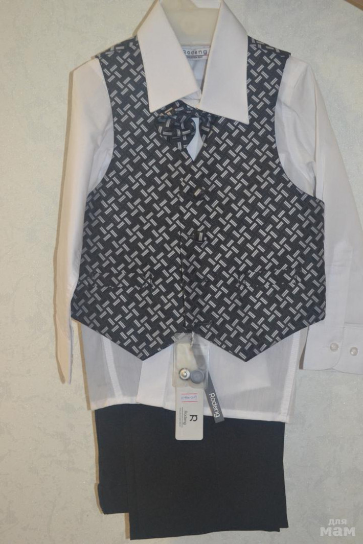 Новый очень качественный костюм Rodeng р. 42 (рост 98) из 4 предметов, рубашка из хлопка. Цена 1300 700 рублей.