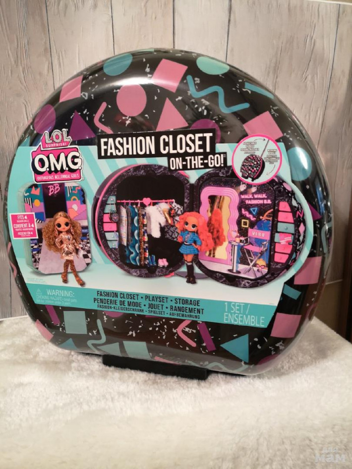 Модный гардероб для фэшн кукол и одновременно стильный чемодан на колесиках с выдвижной ручкой для путешествий. 2 огромных отделения ( закрываются на молнии), в которых можно разместить 4 большие куклы Лол ОМГ. Также в гардеробе LOL Surprise предусмотрены выдвижные ящики для аксессуаров, перекладина с вешалками для хранения кукольной одежды.