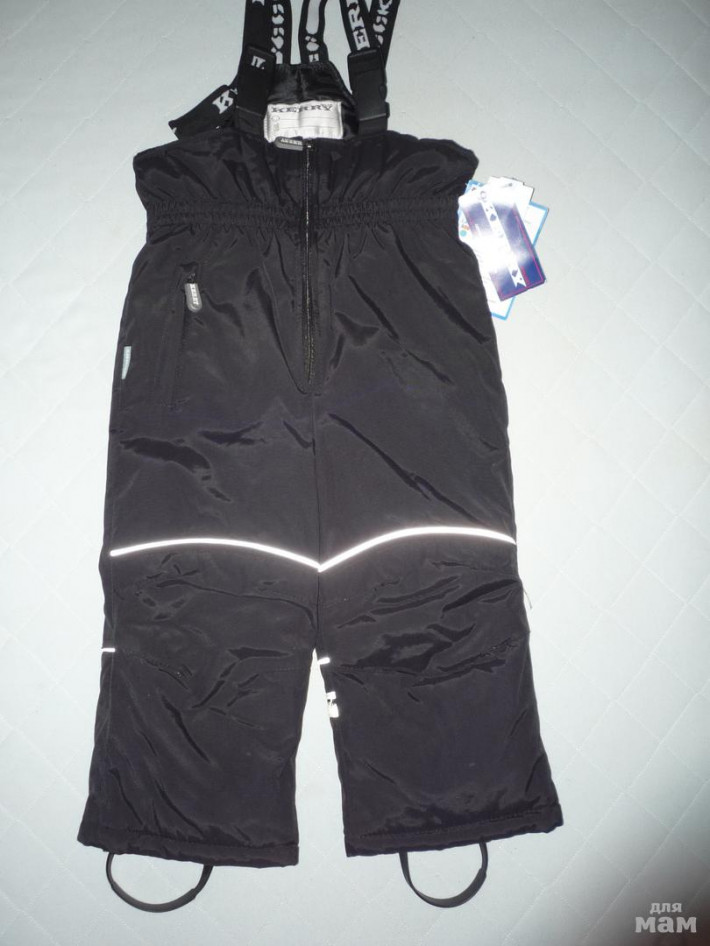 резинке, с молнией на боку, штрипки. Грудка полукомбинезона на флисе.