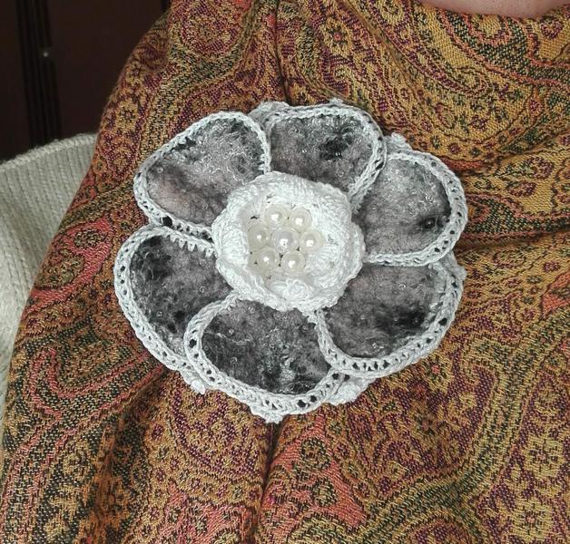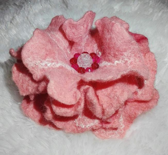 Валяная брошь-цветок это изящное украшение на одежду,сумку, жакет или платье, а также - оригинальное украшение для женщины и хороший подарок по любому случаю.