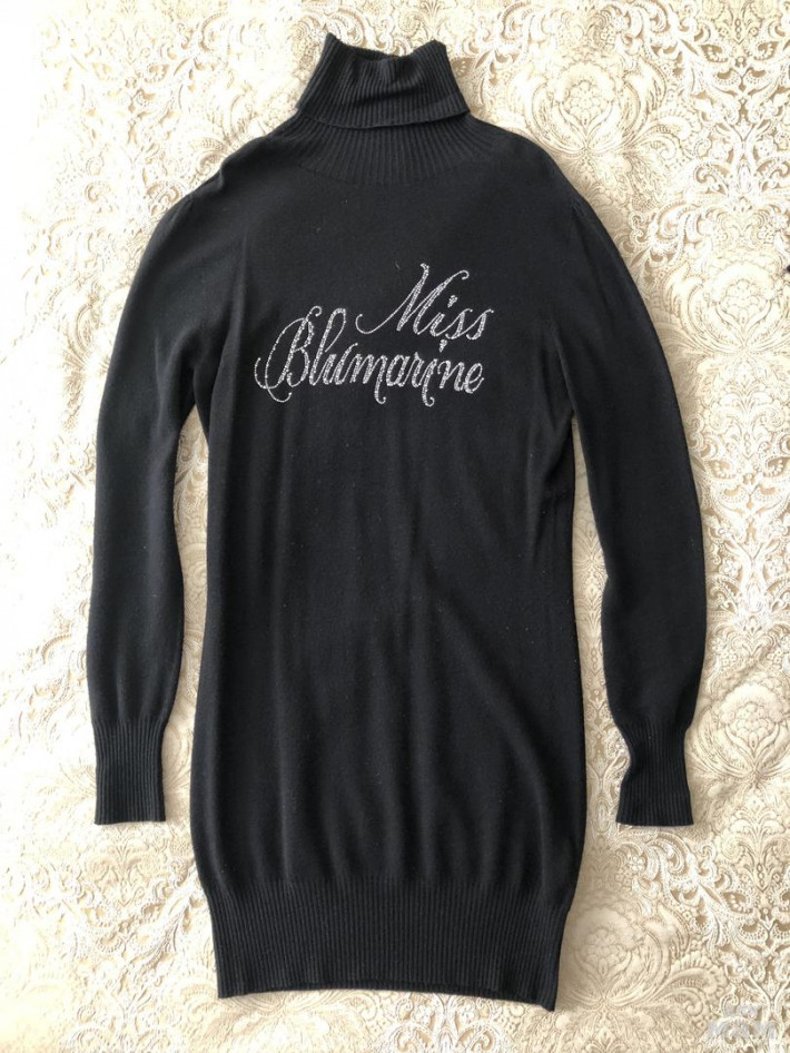 2) Платье -туника Miss Blumarine цвет чёрный. На груди красивая надпись.высокое горло.